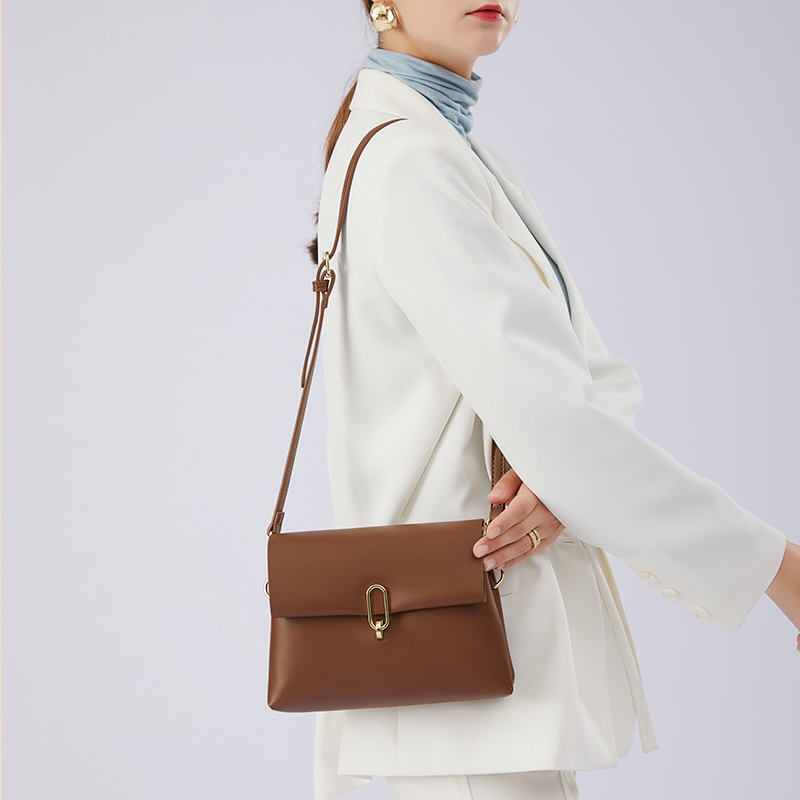 The new 2025 light and mature style commuting bag features a classic envelope bag shape and metal buckle decoration, with a French retro atmosphere. Preferred delicate PU leather, with a soft and wear-resistant touch; The color scheme includes caramel brown, white and other temperament colors, suitable for various scenarios such as workplace and dating. The shoulder strap is adjustable, allowing for free switching between single shoulder and crossbody, making it easy to fit your phone, lipstick, and other personal items. A niche design that doesn’t clash with other styles is a texture bonus for everyday wear.